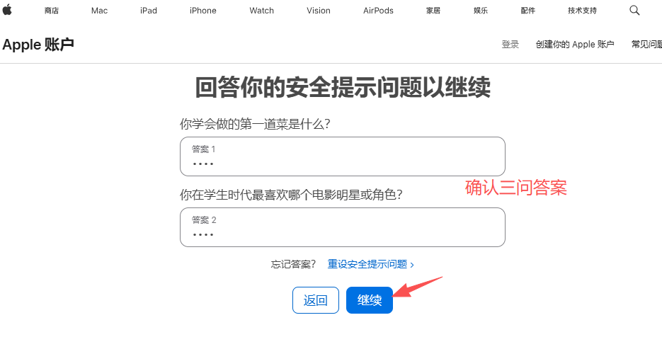 提醒:17年8月下旬苹果改密政策已更新,所有账号都要先设置三问;使用原密码和三问答案进行账号管理。